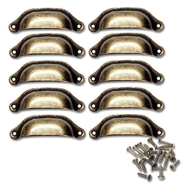 10個入り真鍮扉キャビネット 取っ手アンティークノブ引き出しシェルプルハンドルカップ ブロンズ