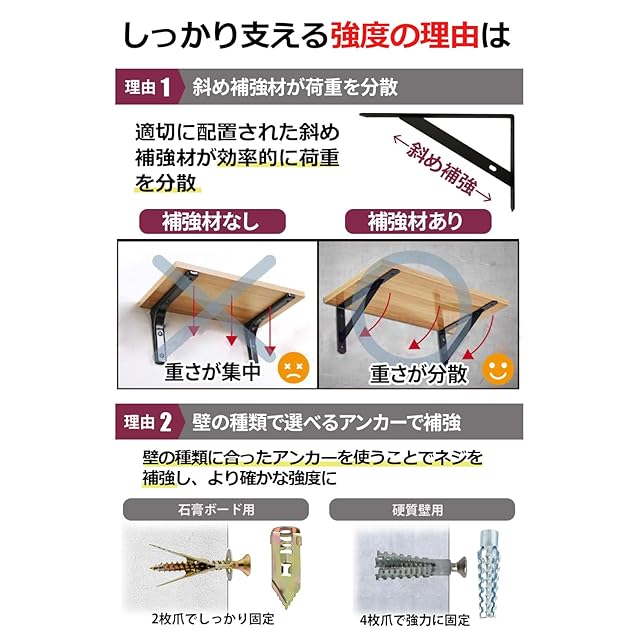 【耐荷重】100kg ※実際の耐荷重は取り付ける壁の強度によります。