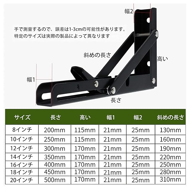 【実用で広い用途】幅広いモデルと強力なサポート:モデルには、さまざまなサイズ要件を満たすための8 "/ 10" / 12 "/ 14" / 16 "折りたたみブラケットが含まれています!壁の空間でも使え、収納ラックや本棚にとしても使えます、食事用テーブル、本棚、キッチン棚、展示台、花園棚、外壁の支柱などとして使えます。とても便利で実用な物です。使用しないときに折りたたむと、 スペース。