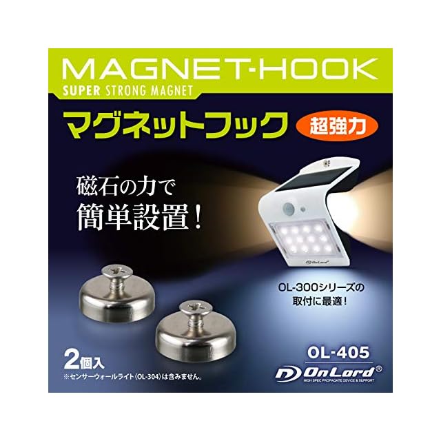 オンロード(OnLord)マグネットフック 2個入 超強力 マグネット センサーライト設置に最適 OL-405