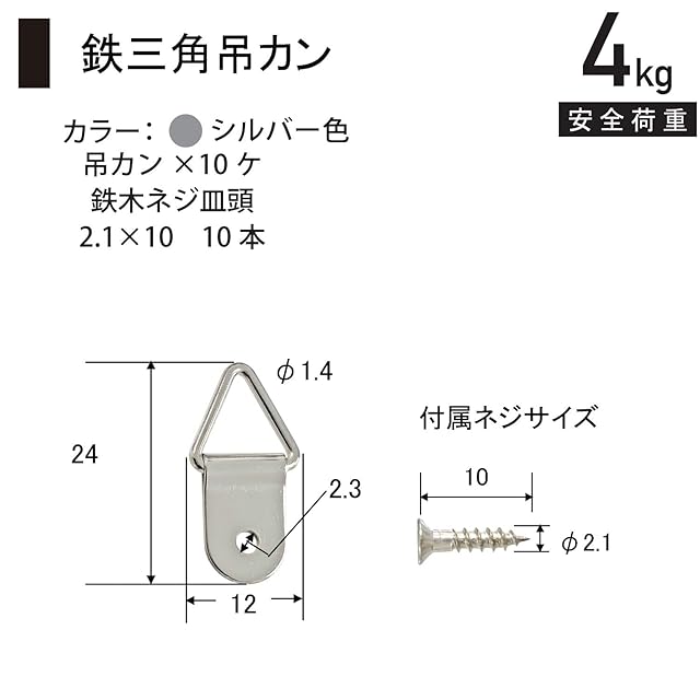 福井金属工芸 三角吊カン 安全耐荷重4kg×10個入 額縁金具 三角カン ビラカン フック 額掛け金具 F-0181