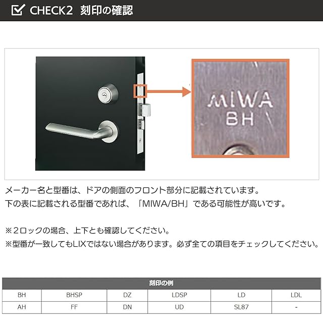 MIWA(美和ロック)のBH+BHシリンダーのDN仕様です。標準BHタイプには取り付けできませんのでご注意ください。必要な工具はプラスドライバーだけ!交換方法を写真付きで解説した交換手順書がセットになっているので簡単に鍵を交換することができます。