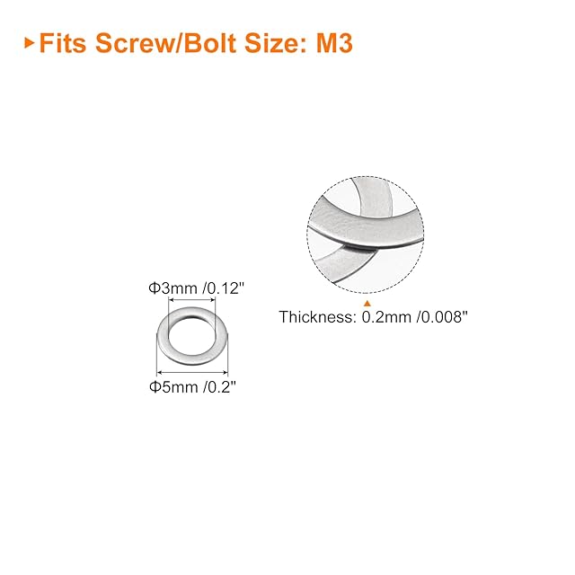 uxcell 平ワッシャー M3 ワッシャー 3×5×0.2mm 平座金 304ステンレス 薄型 フラットスペーサー ドア蝶番調整 ネジボルト 丸座金 100個