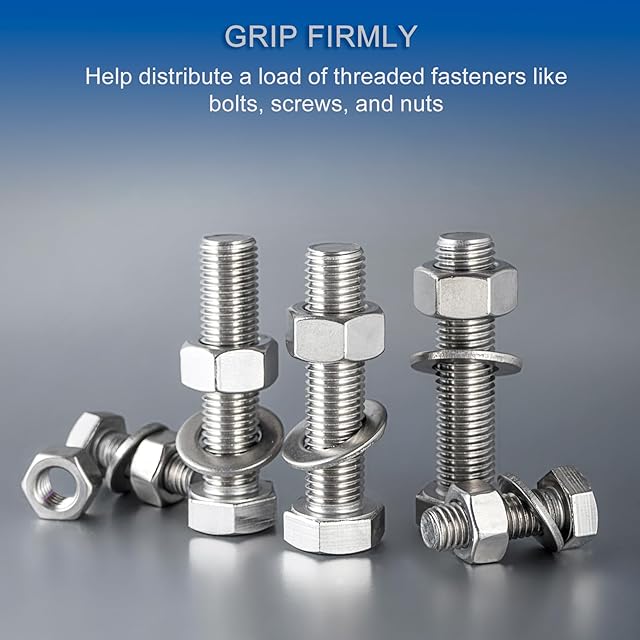 【デザイン】ワッシャーは接触面を増やします。平ワッシャーはM10ネジやボルトと組み合わせて使用し、荷重を均等に分散します。座面に傷をつけにくいです。また薄い平ワッシャーは狭いスペースでも使用可能です。