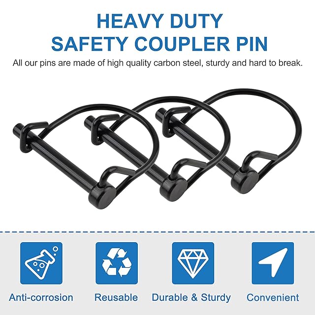 INCREWAY 10pcsワイヤーロックピン, 1/4"ヘビーデューティ安全カプラーシャフトロックピンヒッチPtoピンラウンドループワイヤーロックトレーラーピン
