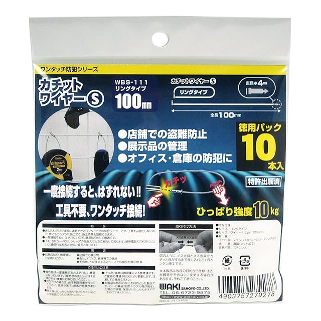 和気産業(Waki Sangyo) カチットワイヤーS 10本入り 100mm リングタイプ WBS-111