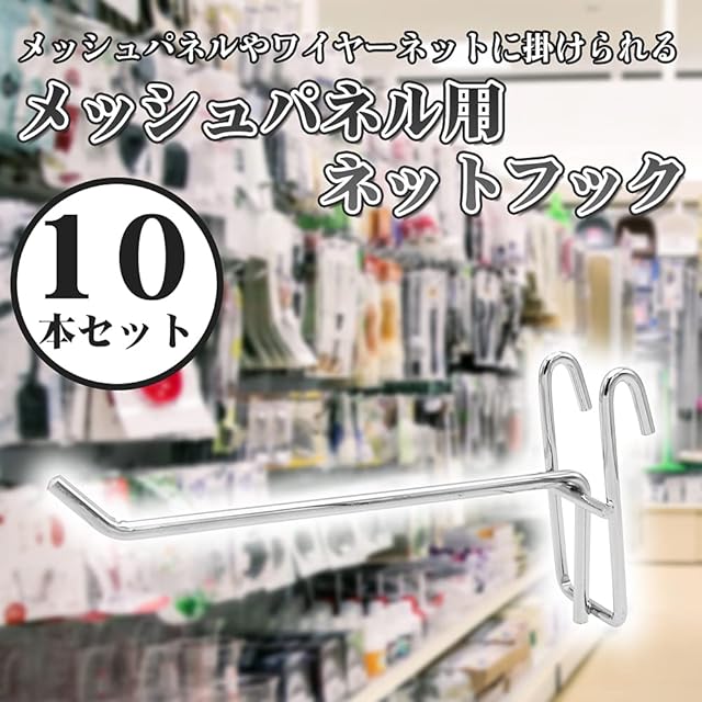 ネットフック 10個 メッシュネット メッシュパネル用 ディスプレイ 掛ける収納 陳列 スチール製 (135mm)