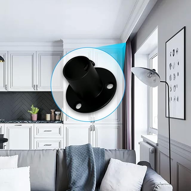 Ohamtes 4Pcs チューブ穴径19mm(3/4 ")、ステンレススチールマットブラック調節可能なカーテンロッド取り付けブラケットクローゼットロッドフランジブラケットシャワーカーテンソケットブラケット