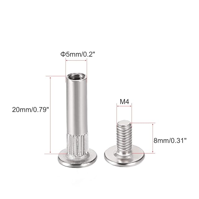 uxcell スクリューポスト ベルトバックル製本ボルトレザー ファスナー炭素鋼 5 mm穴径に適合 メスM4x20 mm 20セット