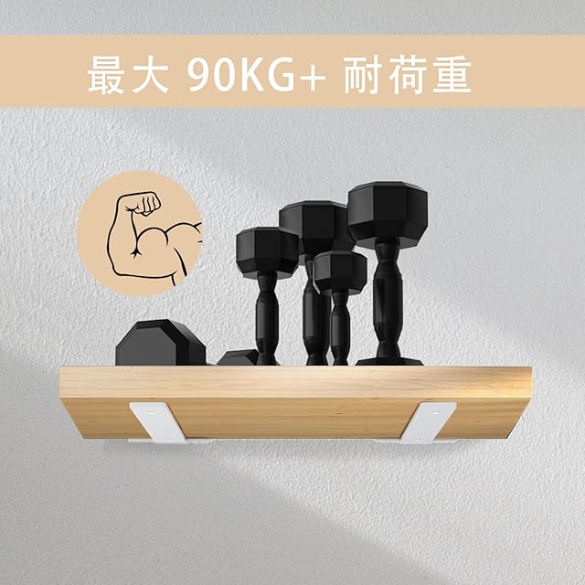【簡単に設置出来】DIYが苦手な方でも簡単に取り付けます。パッケージには、付属のネジ、アンカーが付いておりますので、届いたらすぐに作業が出来ます。素人作業で設置してます。2つの棚受け金具が互いに平行で壁に垂直であることを確認する必要があります。