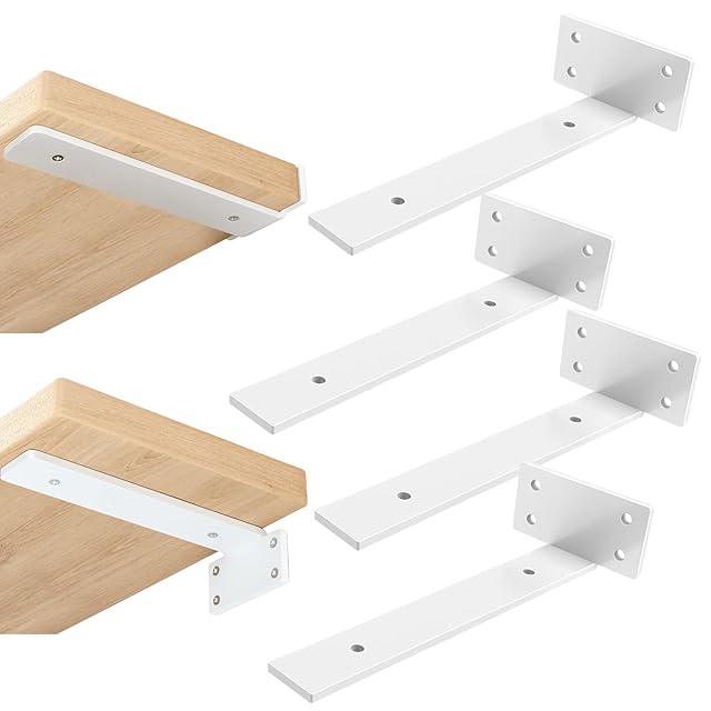 DRERIO棚受け 白 25cm 4個セット 高耐荷重 アイアンブラケット 目立たない棚受け 最大荷重90KG 頑丈 L字金具 棚受け金具 棚の補強 棚支え(ホワイト)