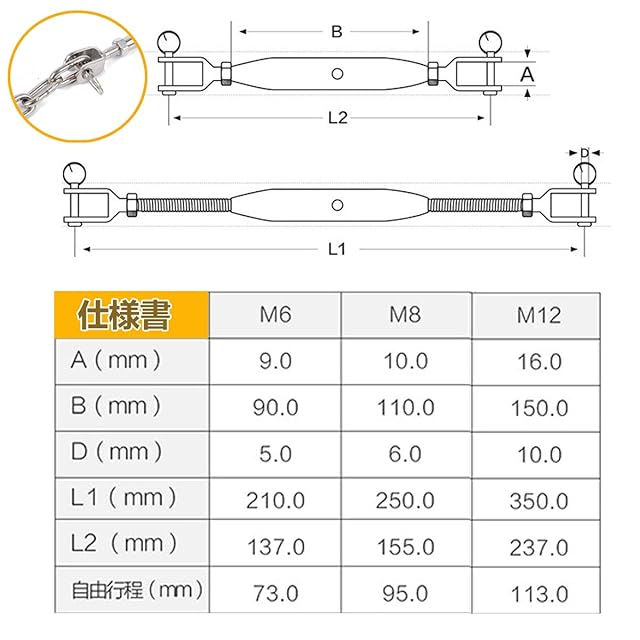 ターンバックル ステンレス ワイヤーバックル バックルスレッド SUS304 防錆 耐久性 高強度 ワイヤー ロープ テンショナー ロ (M12 5)