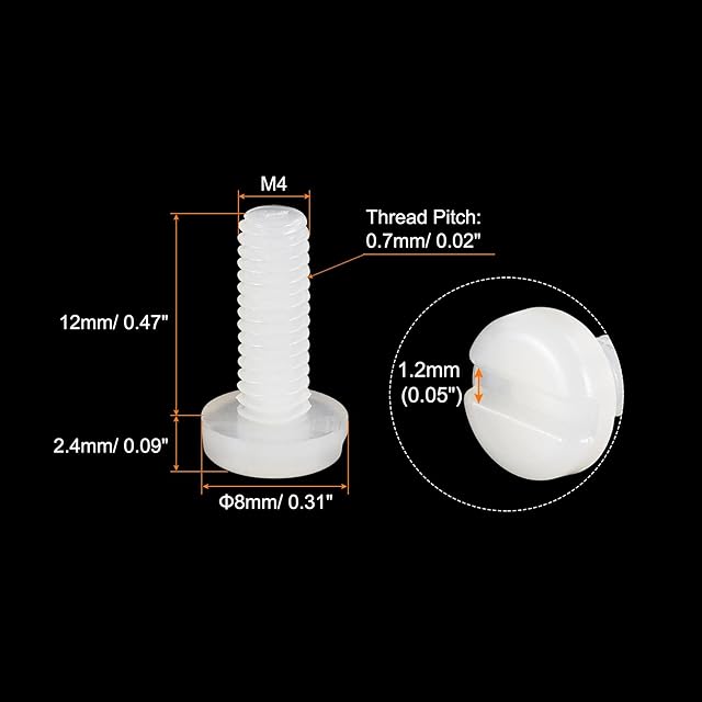 uxcell ナイロン小ネジ スロット付きなべ頭 ファスナーボルト エレクトロニクス コミュニケーション 設備用 M4x12mm