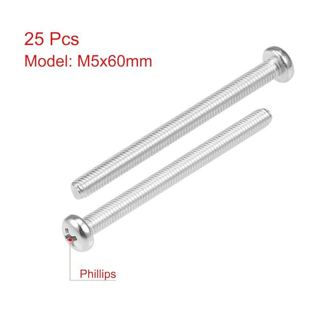 uxcell ボルト M5 x 60mm 機械ネジ十字穴付きなべ 機械ねじファスナ ボルト 25個入れ