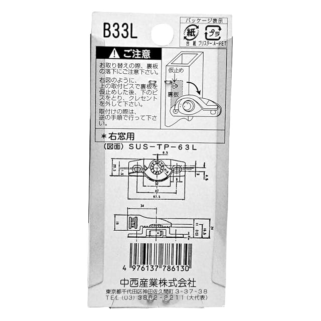 中西産業 クレセント錠 TP-63(L)ブロンズ 00094134-001 B33(L)