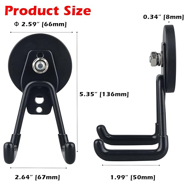 [多用途でユニバーサル] 2個のマグネットフックを含むパッケージは、ガレージ、庭、ショップ、地下室、倉庫に広いスペースを与え、清潔で広々とした明るい環境を提供するガレージとストレージを整理するのに役立ちます。