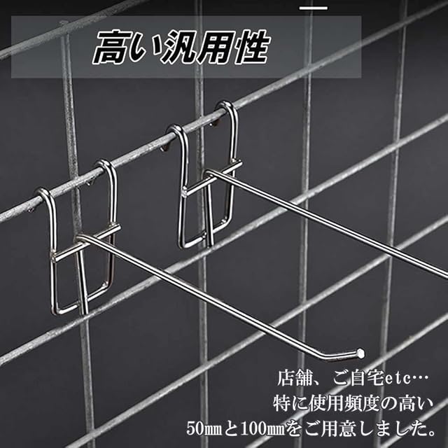 ✅【50㎜ 100㎜/30個セット】メッシュネットなど網や金網に引っ掛け、取り付けるネットフックです。使用頻度の高い2サイズをご用意しました。有孔ボードフックとしてもお使いいただけます。