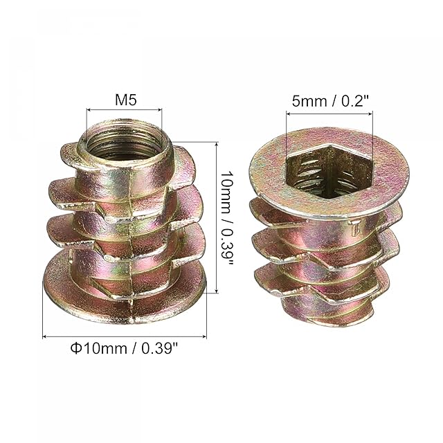 uxcell 家具ねじ込みナット 亜鉛合金 ねじインサートナット カラー亜鉛 ウッド用 M5x10 mm 40個