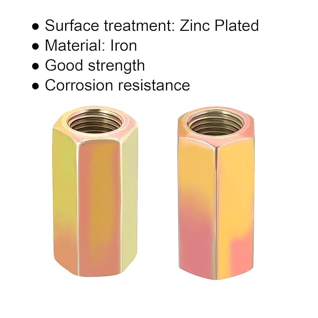 素材:アイロン;表面処理:亜鉛メッキ;ねじサイズ:M10*1mm; サイズ:14mmx30mm(六角W*H); パッケージコンテンツ:5 x 六角カップリングナット