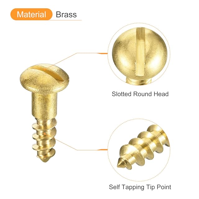 uxcell 木ねじ M3 x 12mm スロットドライブ ラウンドヘッド 真鍮 セルフタッピング 木工用ねじ 60個入り