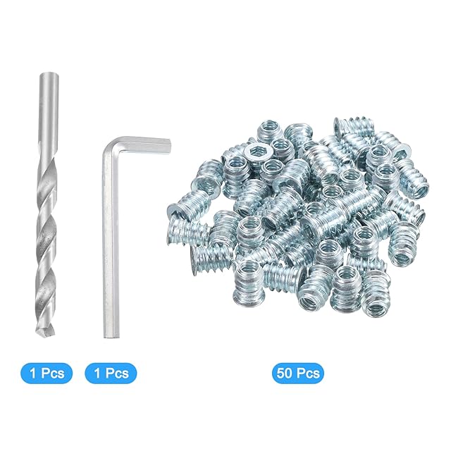 uxcell ねじ込みインサート 木材用 ねじ付きインサートナット 六角レンチとドリルビット付き 木製インサートナット 1/4-20 x 15 mm 金トーン 50個