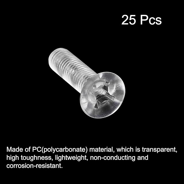 頑丈で透明なエンジニアリング熱可塑性プラスチックであるポリカーボネート素材で作られています。軽量、高靭性、高耐衝撃性、帯電防止、非導電性、優れた絶縁性、耐加水分解性、耐食性、錆びない、耐熱性、長寿命などの特徴が付いています。<br />皿穴スタイルは、ネジヘッドを面一にする必要がある狭い場所での使用に非常に適しています。<br />エレクトロニクス産業、風力発電産業、航空宇宙産業、事務機器産業、通信産業、造船業、展示会産業、DIY手工芸品などで広く使用されています。<br /><br /><br />仕様:<br /><br />素材:PC(ポリカーボネート)<br />ドライブタイプ:<br />ヘッドスタイル:フラットヘッド<br />サイズ:M6 x 25 mm<br />ピッチ:1 mm <br />ネジヘッド直径:11 mm <br />パッケージ内容:25個 x 機械ネジ