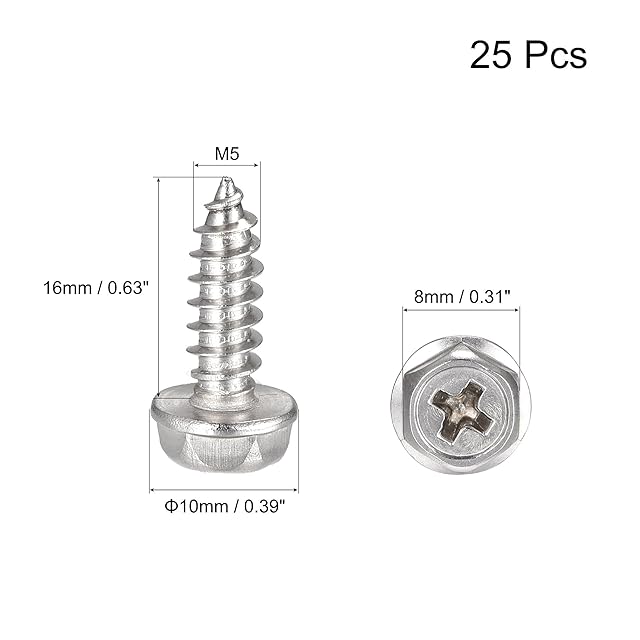 uxcell 六角ワッシャーセルフタッピングねじ 304ステンレス鋼 六角フランジ板金ねじ M5x16 mm 25個