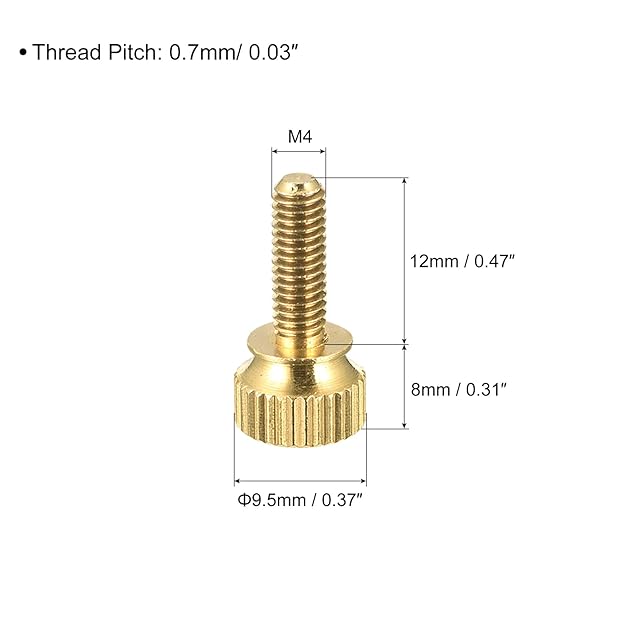 商品名:uxcell ローレットつまみねじ M4x12 mm 真鍮 ショルダーボルト 階段状 グリップノブファスナー PC、電子、機械用 5個