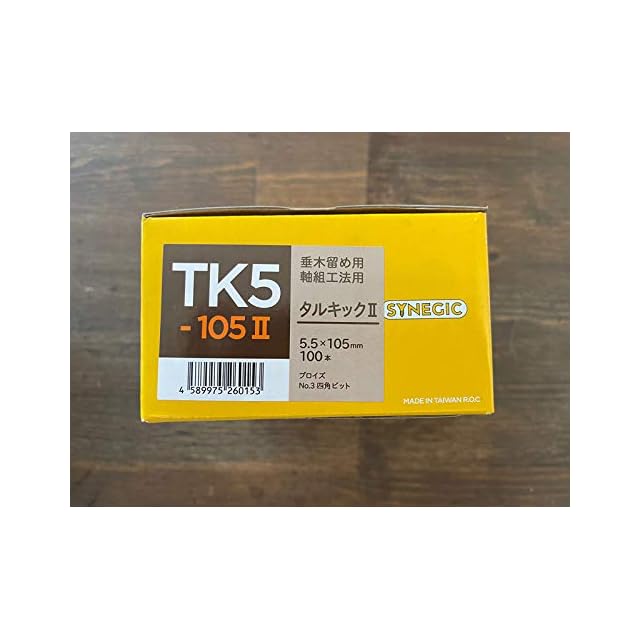 タルキックⅡ TK5-105(20本入×5袋)【対応垂木高さ~60mm】 商品名 : タルキックⅡ 施工箇所 : 木造軸組工法の垂木留め 吹上耐力 : 1.4kN 表面処理 : ノンクロム表面処理 使用ビット : 四角ビット No.3 接合部材 : 木ー木 推奨工具 : インパクトドライバー ※頭部サイズ刻印入り ※本製品は構造用途にも対応しています。