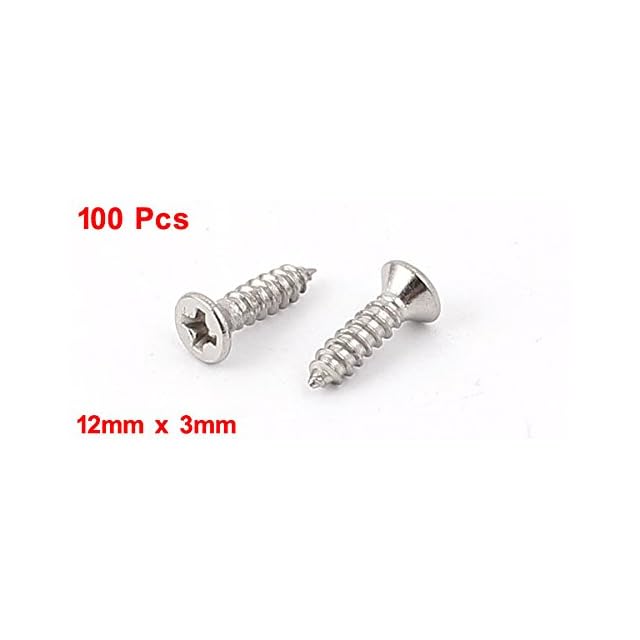 uxcell タッピングネジ セルフ ステンレス鋼 フラットヘッド 100個 12mm x 3mm