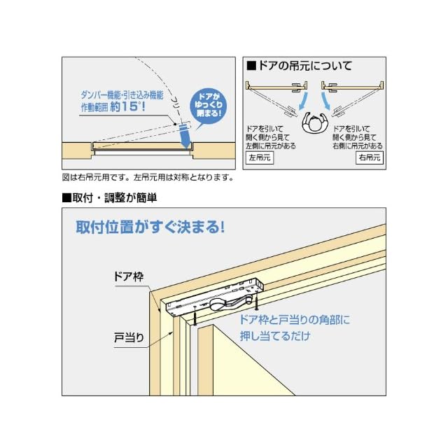 ドアクローザーとくらべ、ドアを軽く開けられます。 対応扉幅:900mm以下/対応扉重量:15~40kg