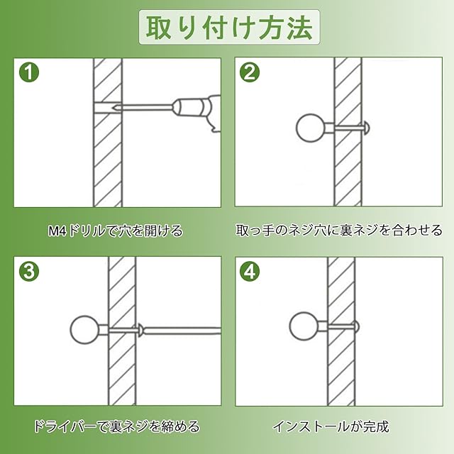 【取り付け簡単】-専用のネジが付属しているため、ドライバーで簡単にい取り付けられます。女性でもお手軽にDIYすることが可能です。取っ手を付け替えるだけで、雰囲気が一気に変わりますので、リフォームやDIY好きな方におすすめです♪