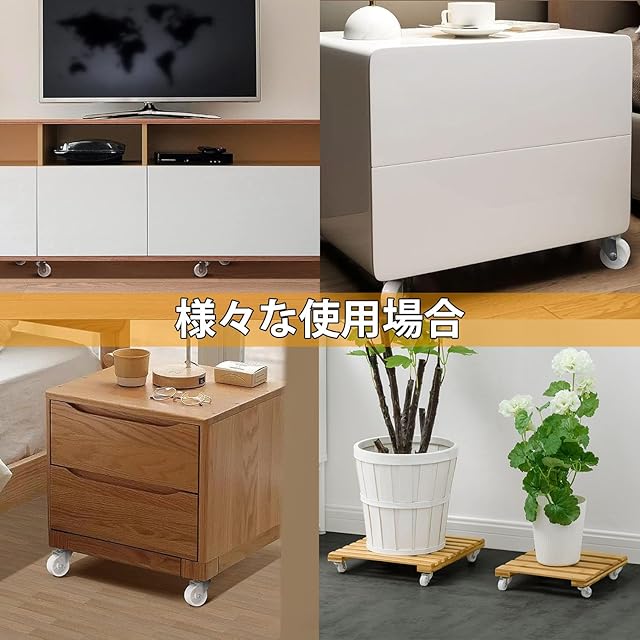 【小さなキャスターでも大きなヘルパー】家具、棚、収納キャビネット、机、本棚、コーヒーテーブル、小型産業機器、ベビーベッド、ペットケージ などに付けると楽久移動することができます。