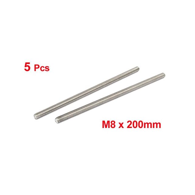uxcell ねじロッド ネジ棒 フルネジ 5本入り メタル 304ステンレス鋼 M8 x 200mm シルバートーン