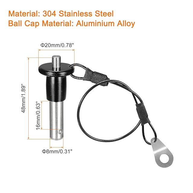 uxcell ボールロックピン 304ステンレス鋼 グリッププッシュボタンロック クイックリリースピン 24 cmワイヤー付き 8 mm-16 mm