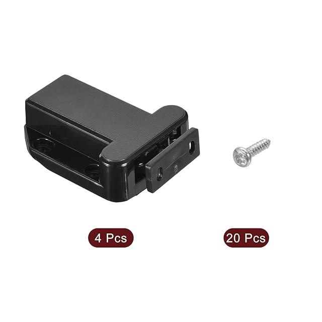 <b>特徴:</b>耐高温性で丈夫で耐久性のあるA BS素材製で、摩耗や色あせしにくいです。<br /><b>用途:</b>取っ手のない頻繁に使用される引き出しに適しています。たとえば、箪笥、工具箱などに使用できます。<br /><b>取り付け:</b>取り付けには穴を開ける必要があります。<br /><b>注意:</b>接着剤による取り付けも可能ですが、ここでは接着剤は提供されていません。<b><br /></b><b>仕様:</b><br />カラー: 黒<br />素材: A BS<br />ベースサイズ: 67 x 43 x 12mm / 2.64" x 1.69" x 0.47"(縦×横×厚み)<br />ストライクサイズ: 28 x 12 x 3 mm/1.1" x 0.47" x 0.12"(縦×横×厚み)<br />パッケージ内容: プッシュラッチ 4個、取り付け用ネジ 20個