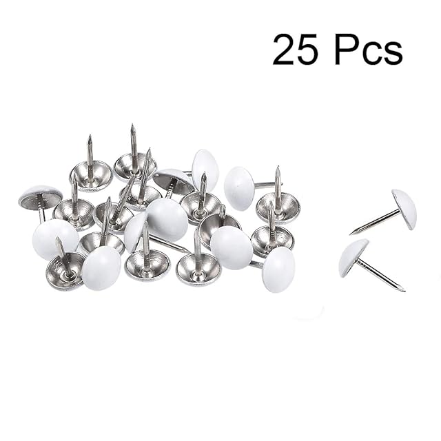 uxcell 画鋲釘 室内装飾ネイルタック ホワイトラウンドヘッド 直径11mm 長さ17mm 家具 ソファ ヘッドボード用 25個入り