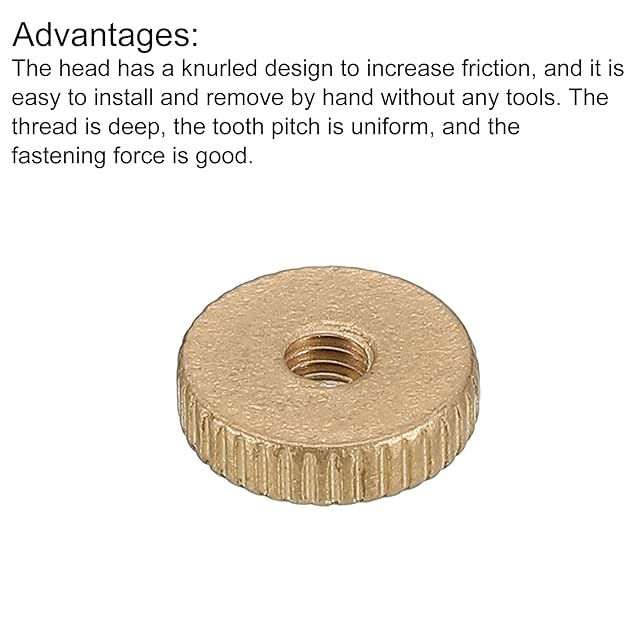 uxcell ローレットつまみナット M4 x D12 mm x H3.5 mm 真鍮 ローレットナット フラットヘッドスルーホールロック 調整ナット 3Dプリンター部品用 5個