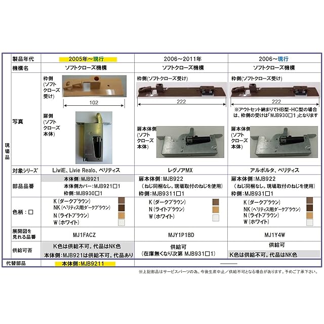 MJB930W2 ソフトクローズ受け部材