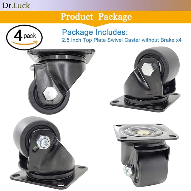 Dr.Luck 2.5寸重荷重用型の黒いナイロンのキャスター 輪直径Φ65mm 自在車キャスター 4個セット 総許容荷重2000kg