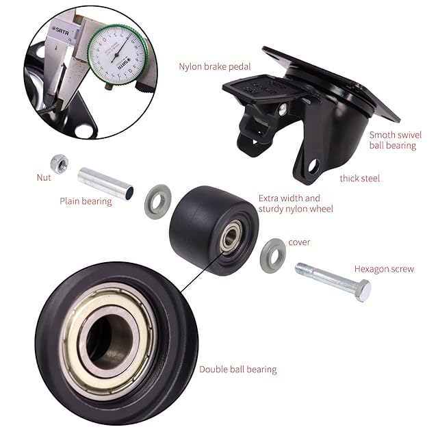 高品質 - 非常に静かな走りで、人気のあるノンマーキングポリウレタンゴムタイプのホイールは、衝撃や振動を吸収します。 ボールベアリングとデュアルロッキングにより、最大積載量と安全性がもたらされます。