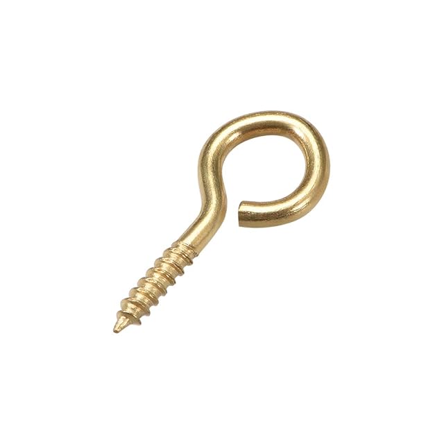 商品名:uxcell 小さなネジアイフック 22mm セルフタッピングネジ 炭素鋼 ねじ込み式ハンガー アイシェイプリングフック ゴールド 50個