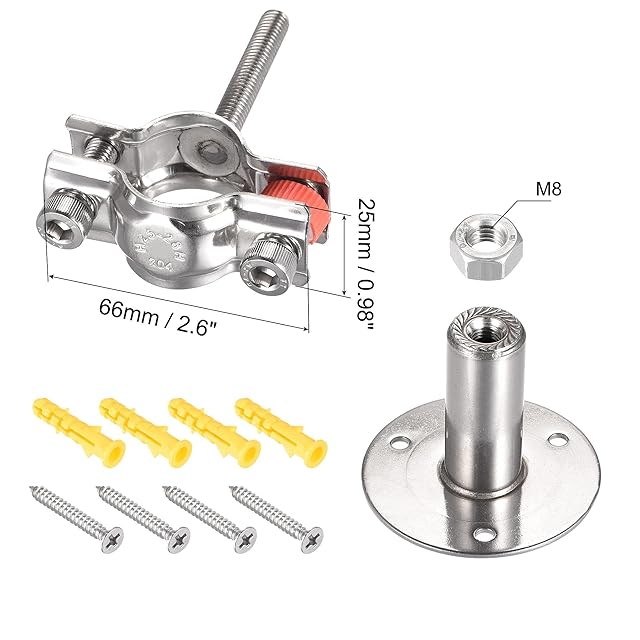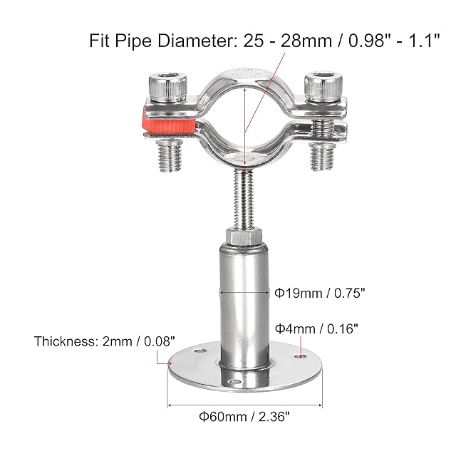 uxcell パイプサポート 壁取り付け 天井取り付け 304ステンレス鋼 調節可能なパイプ ブラケットクランプ 25-28 mmパイプ用 2個