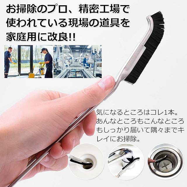 ✅【大成工業ブラシのこだわりと特徴】✨本体はステンレス製でさびにくく丈夫な作りになっております。✨力を加えやすいように指ストッパーが付いており握りやすくなっています。✨細かい隙間や角にブラシの毛が届くように設計された、Jの字のようなカーブをした先端になっております。✨汚れを落としやすく、お掃除場所を傷つけにくい適度な硬さのナイロン毛「ナイロン66」(NY66)を使用しております。✨耐熱性があり、油汚れ等はお湯を使ってご使用いただくことが可能です。