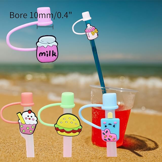 Conquerall 6PCS かわいい食糧定形ストロー キャップ 10mm のストローとの使用のために設計されている食品等級のシリコーンのストロー キャップ Stanley 30oz および 40oz のストロー マグの付属品