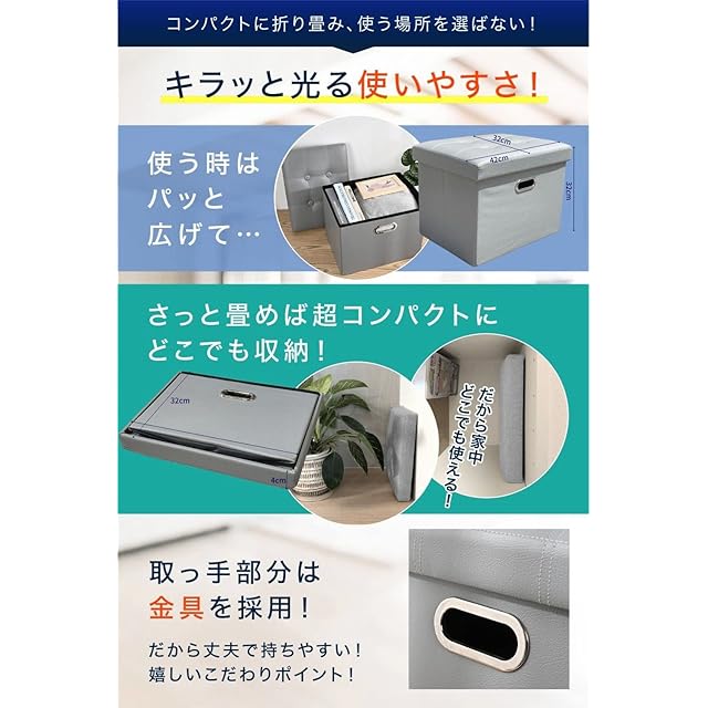 ✅【コンパクトで組み立て簡単】収納スツールは説明書いらずで、安心簡単組立て。セットアップにかかる時間はわずか数秒で、急な来客時でもサっと出せて椅子にもなります。ストレージチェアを使わない時は折りたたみできるのがポイントです。コンパクトに収納できます。他のオットマンに比べ、取っ手付き付きなので丈夫で持ち運びに便利。収納スツールは収納力抜群。玩具、本や雑誌、リモコン、雑貨、毛布など収納可能。ごちゃごちゃした物を収納スペースにお片付け。多用途な収納ボックスで足置き、おもちゃ箱、雑貨収納ボックスとして活躍。玄関のちょっとしたイスにもなります。