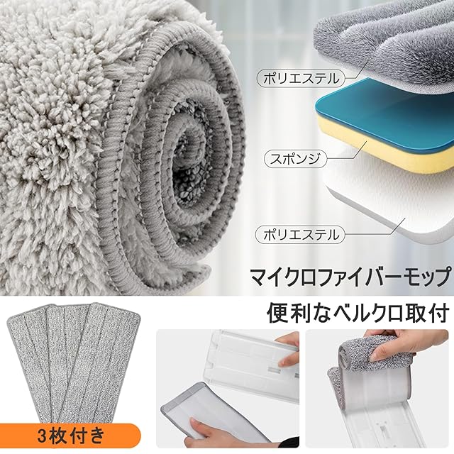 使用便利:マイクロファイバーモップパッドはベルクロでモップヘッドにしっかりと固定され、交換が簡単です。フラットモップのハンドルは回すだけで締まり、1分で取り付けられます。主婦向けバケツは軽量で収納簡単です。