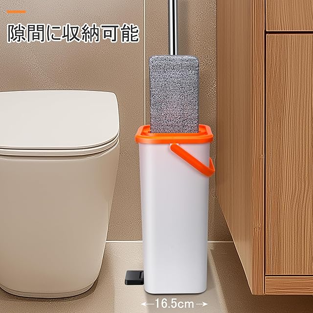 Masthome モップバケツ付き フロアモップ 360°回転 フロリングワイパー 乾湿両用 床拭き 掃除モップ ハンズフリー 3枚替えパッド付き 省スペース 掃除道具 ホワイトオレンジ