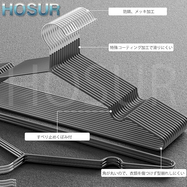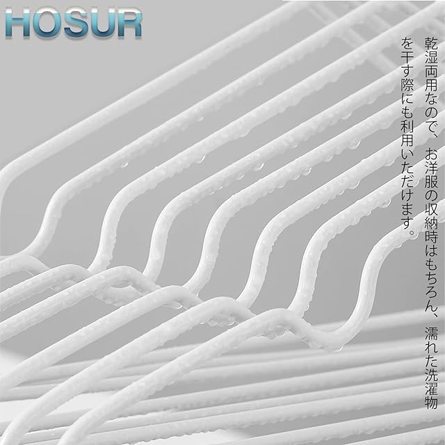 【特殊コーティング加工で滑りにくい】スチール製のハンガー本体はPVC樹脂で特殊コーティングが施され、掛けた衣類が滑り落ちません。ワイシャツなど薄手の衣類がずれたり、落ちたりする心配がなく、安心です。