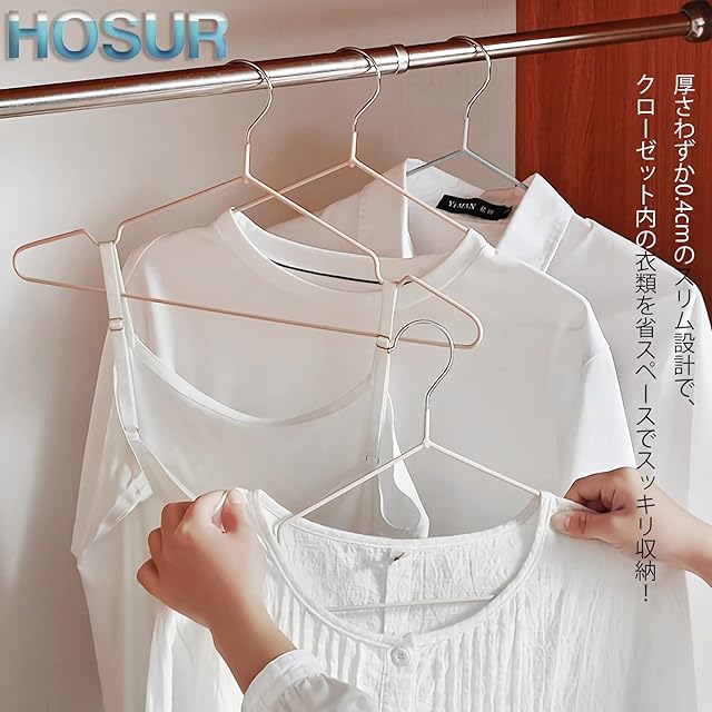 【整理しやすい薄さ】ハンガーの厚さわずか0.4cmなので、スペースをとらず、衣類をスッキリ収納できます。スタイリッシュなデザインなので、お気に入りの服を整理できます。クローゼットの中がすっきり気持ちよく整えます。
